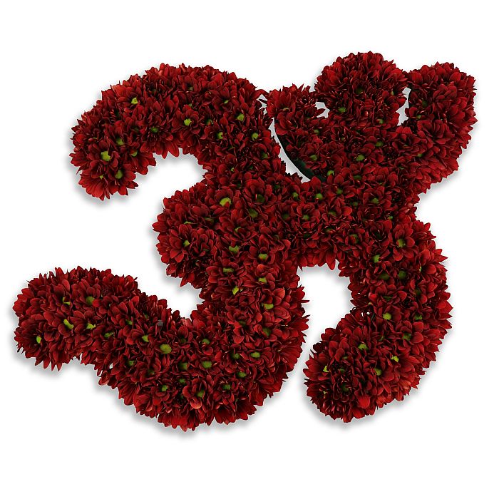 The rich crimson chrysanthemums were a beautiful symbol of our love and respect.